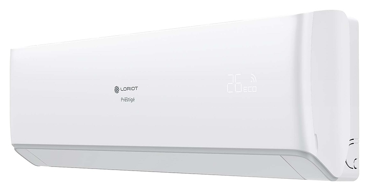 Настенная сплит-система Loriot LAC-07AHсерии Prestige используется для создания максимально кофмортных условий микроклимата в жилых, офисных и коммерческих помещениях. Модель состоит из внутреннего блока LAC-07AH-IN и наружного блока LAC-07AH-OUT. Наружный блок оснащен 3-лопастным вентилятором с защитной решеткой, внутренний блок – воздухозаборной решеткой, откидной лицевой панелью, подвижными горизонтальной заслонкой и вертикальными жалюзи, электронным блоком управления и светодиодным дисплеем Hidden скрытого типа с проецируемой на фронтальную панель индикацией, пульт – информативным жидкокристаллическим дисплеем и кнопочной клавиатурой. Облицовка внутреннего блока выполнена из пластика с поверхностью белого цвета, корпус пульта – из ударопрочного белого пластика.