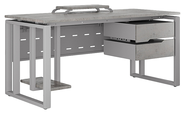Компьютерный стол Кобор KO2-80/60 aluminum/chicago используется в офисных помещениях и кабинетах руководителей. Модель оснащена усиленными вертикальной балкой O-образными опорами. Каркас выполнен из металла, выкрашенного в цвет алюминиевый металлик (RAL9006), столешница – из ламинированной древесно-стружечной плиты (ЛДСП) цвета бетон чикаго (F186 ST9). Опции (заказываются отдельно):
