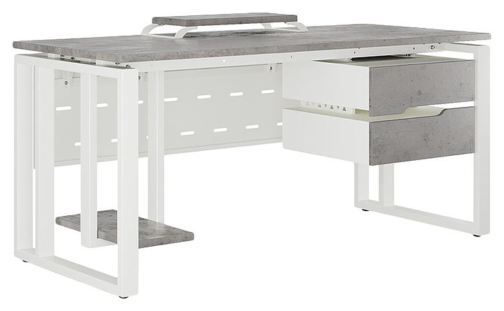 Компьютерный стол Кобор KO2-80/60 white/chicago используется в офисных помещениях и кабинетах руководителей. Модель оснащена усиленными вертикальной балкой O-образными опорами. Каркас выполнен из металла, выкрашенного в цвет белый муар (RAL9016), столешница – из ламинированной древесно-стружечной плиты (ЛДСП) цвета бетон чикаго (F186 ST9). Опции (заказываются отдельно):
