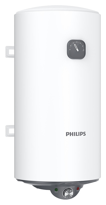 Электрический накопительный водонагреватель Philips AWH1603/51(100DA) серии UltraHeat Round используется в местных системах водоснабжения для постоянного автономного обеспечения горячей водой одной или нескольких точек водоразбора таких как санитарные узлы, кухни в жилых и загородных частных домах, а также других бытовых и хозяйственных объектах. Модель оснащена внутренним баком, трубчатым электронагревателем (ТЭНом), расположенной на нижней крышке электромеханической панелью управления, резьбовыми штуцерами для подвода холодной и выхода горячей воды. Вертикально ориентированный корпус цилиндрической формы выполнен из металла с матовым антикоррозийным покрытием белого цвета, нижняя крышка – из ударопрочного пластика серого цвета, внутненний бак – из стали, ТЭН – из литого алюминия, термоизоляция – из пенополиуретана высокой плотности. В комплект поставки входят 2 монтажных кронштейна, 2 анкерных болта, заводская упаковка, инструкция по эксплуатации и гарантийный талон. Особенности: