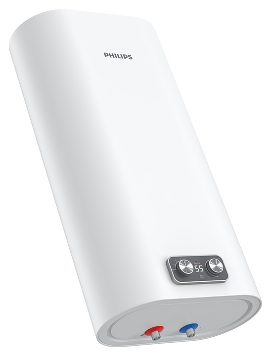 Электрический накопительный водонагреватель Philips AWH1617/51(80YB) серии UltraHeat Digital используется в местных системах водоснабжения для постоянного автономного обеспечения горячей водой одной или нескольких точек водоразбора таких как санитарные узлы, кухни в жилых и загородных частных домах, а также других бытовых и хозяйственных объектах. Модель оснащена внутренним баком, 2 трубчатыми электронагревателями (ТЭНами), расположенной на фронтальной стенке электромеханической панелью управления с цифровым светодиодным дисплеем, резьбовыми штуцерами для подвода холодной и выхода горячей воды. Вертикально ориентированный уплощенный корпус овального сечения выполнен из металла с матовым антикоррозийным покрытием белого цвета, нижняя крышка – из ударопрочного белого пластика, внутненний бак – из высококачественной нержавеющей стали, ТЭНы – из литого алюминия, термоизоляция – из пенополиуретана высокой плотности. В комплект поставки входят 2 монтажных кронштейна, 2 анкерных болта, заводская упаковка, инструкция по эксплуатации и гарантийный талон. Особенности: