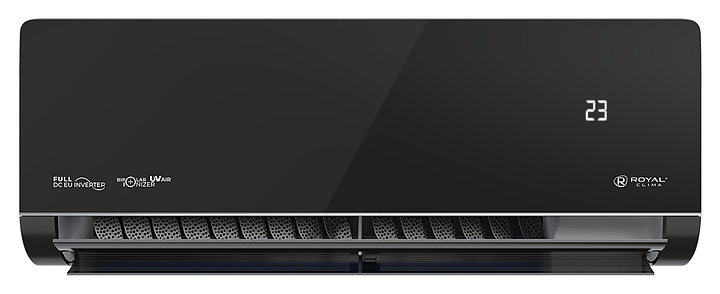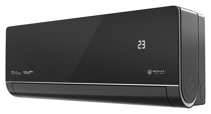 Настенная сплит-система ROYAL Clima RCI-RSN30HNсерии ROYAL SUPREMO NERO Full DC EU Inverter используется для создания максимально кофмортных условий микроклимата в жилых, офисных и коммерческих помещениях. Модель состоит из внутреннего блока RCI-RSN30HN/IN и наружного блока RCI-RSN30HN/OUT. Наружный блок оснащен 3-лопастным вентилятором, защитными решеткой и крышкой для сервисных вентилей, внутренний блок – воздухозаборной решеткой, откидной лицевой панелью, подвижными горизонтальными и вертикальными жалюзи, электронным блоком управления и светодиодным дисплеем скрытого типа с проецируемой на фронтальную панель индикацией, пульт – информативным жидкокристаллическим дисплеем с яркой оранжевой подсветкой и кнопочной клавиатурой. Облицовка внутреннего блока выполнена из пластика с поверхностью черного цвета и декоративными фронтальными и боковыми вставками серебристого оттенка, корпус пульта – из ударопрочного черного пластика.