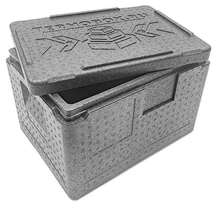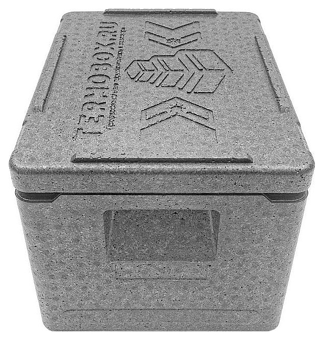 Термоконтейнер TERMOBOX StP Light 4327L используется службами доставки предприятий общественного питания и пищевой промышленности, а также в быту, во время туристических походов, пикника, рыбалки или дорожных путешествий для хранения и транспортировки приготовленных блюд, напитков, льда, свежих фруктов и других пищевых продуктов в автономных изотермических условиях. Модель прямоугольно ориентированной формы оснащена съемной плотно прилегающей крышкой. Изделие выполнено из высококачественного вспененного полипропилена (EPP) черного цвета. Особенности:
