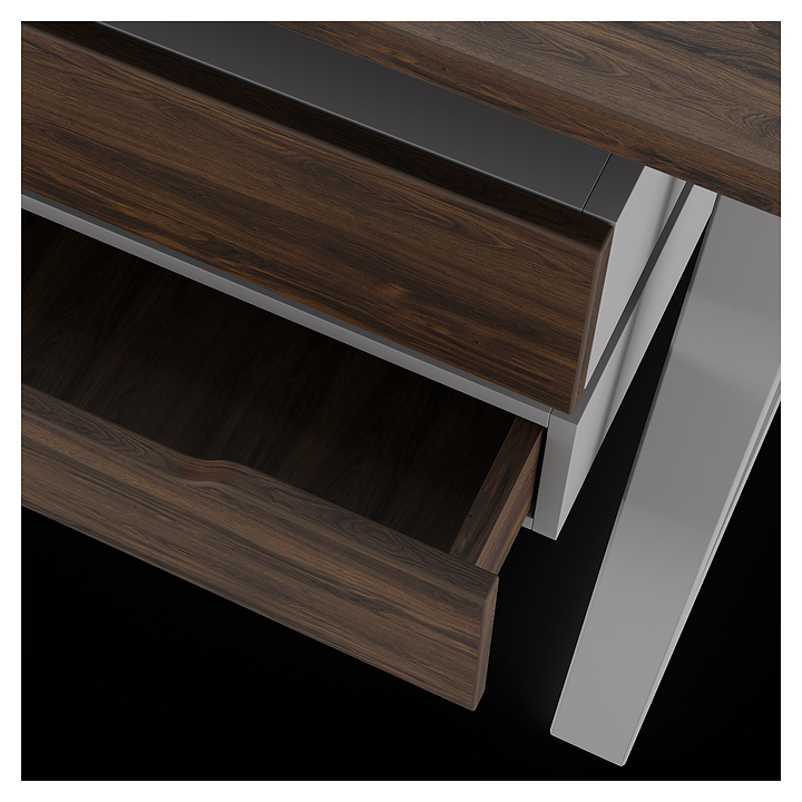 Компьютерный стол Кобор KTR-80/60 aluminum/charlston используется в офисных помещениях и кабинетах руководителей. Модель оснащена опорами в форме трапеции. Каркас выполнен из металла, выкрашенного в цвет алюминиевый металлик (RAL9006), столешница – из ламинированной древесно-стружечной плиты (ЛДСП) цвета дуб чарльстон (H3154 ST36). Опции (заказываются отдельно):