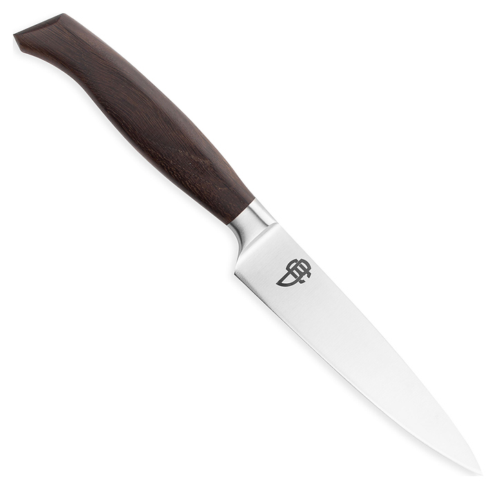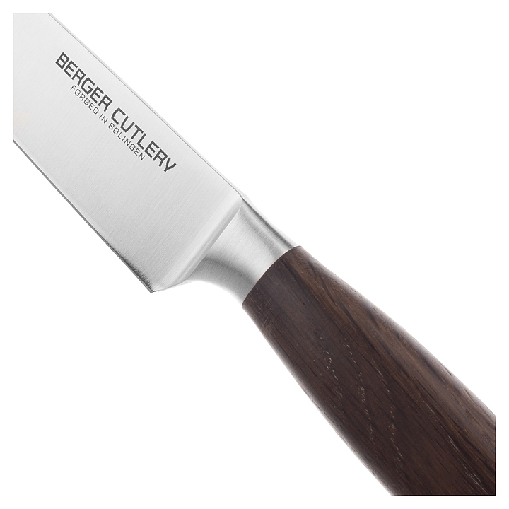 Универсальный нож BERGER CUTLERY Ergo Line Smoked Oak BC111216 предназначен для нарезки продуктов на предприятиях общественного питания и торговли, а также в частных домах и квартирах. Лезвие выполнено из высококачественной кованой молибден-ванадиевой стали X50CrMoV15, рукоять - из мореного дуба. Особенности: