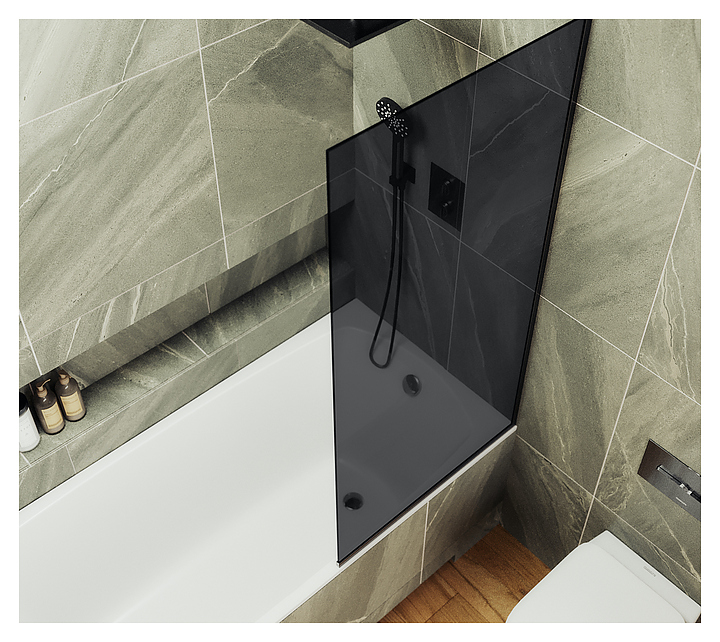 Шторка на ванну MaybahGlass MGV-78-6у 40х140 см, графит, черный