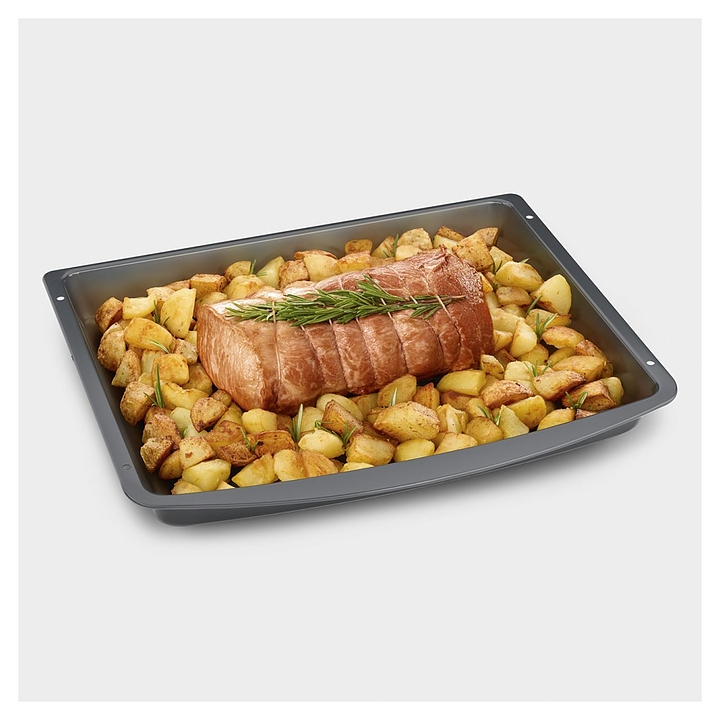 Противень SMEG ET50 используется совместно с духовыми шкафами для приготовления большого ассортимента блюд. Модель прямоугольно ориентированной формы оснащена выступающей кромкой и изогнутым фронтальным бортом с интегрированной рукояткой. Изделие выполнено из стали с эмалированным покрытием. Характеристики: