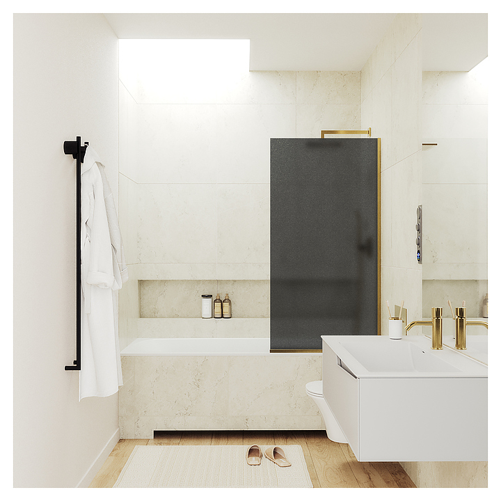 Шторка на ванну MaybahGlass MGV-85-3у 50х140 см, графит матовый, золото