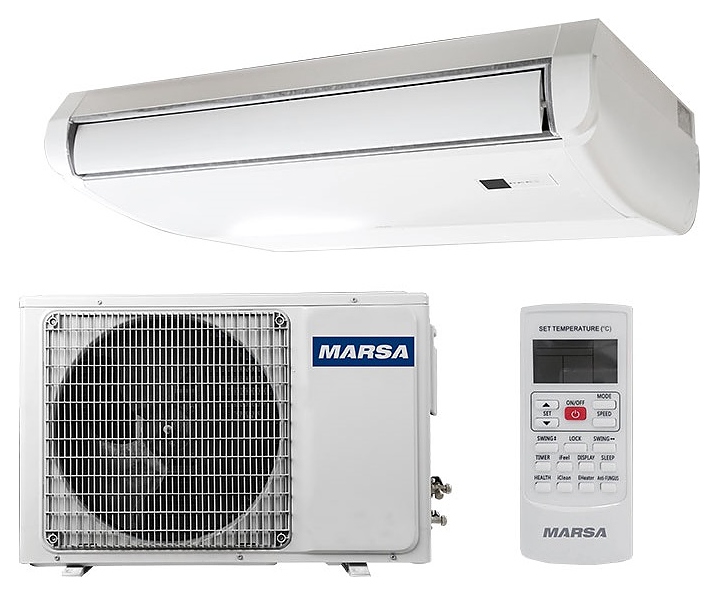 Напольно-потолочная сплит-система MARSA MRK-36СHA2N / MRK-36HA2NE-W серии OPTIMAL используется для создания максимально кофмортных условий микроклимата в административных, коммерческих и производственных помещениях. Модель состоит из наружного блока MRK-36HA2NE-W, внутреннего блока напольно-потолочного типа MRK-36СHA2N. Наружный блок оснащен 3-лопастным вентилятором с защитной решеткой, лицевая панель внутреннего блока – подвижной горизонтальной воздушной заслонкой, воздухозаборной решеткой, индикационным блоком со светодиодными сигнальными лампами и цифровым дисплеем, пульт – информативным жидкокристаллическим дисплеем и кнопочной клавиатурой. Корпус внутреннего блока выполнен из удоропрочного белого пластика, корпус пульта – из белого пластика.