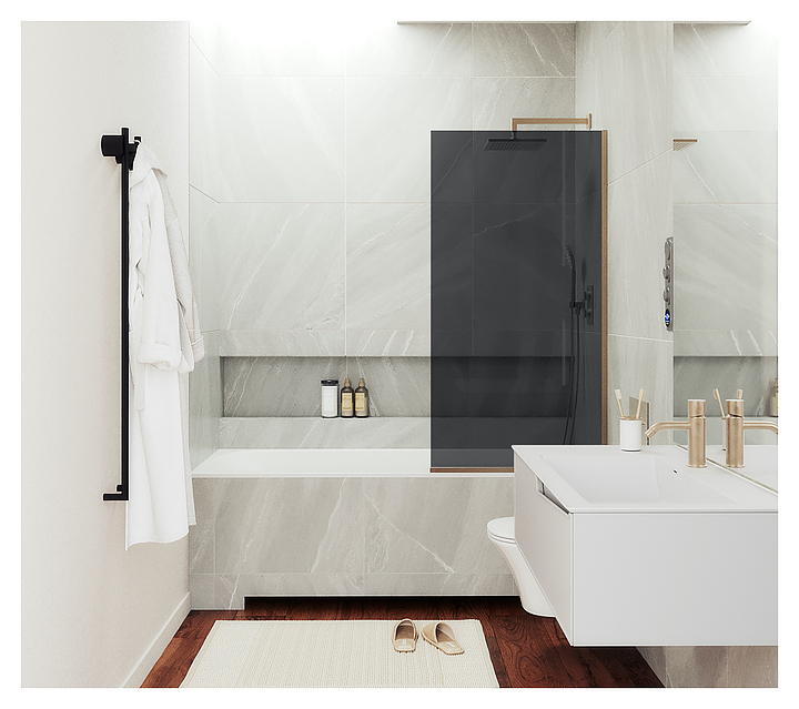 Шторка на ванну MaybahGlass MGV-80-2у 60х140 см, графит, бронза