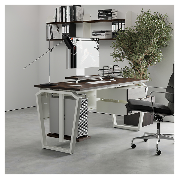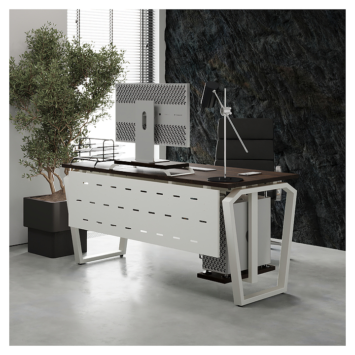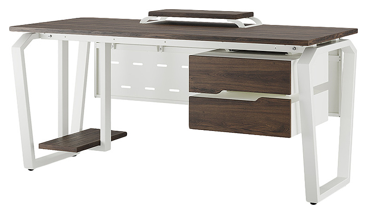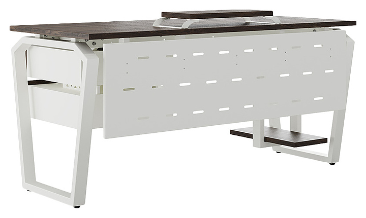 Компьютерный стол Кобор KTB-180/80 white/charlston используется в офисных помещениях и кабинетах руководителей. Модель оснащена опорами в форме обратной трапеции со скошенными верхними углами. Каркас выполнен из металла, выкрашенного в цвет белый муар (RAL9016), столешница – из ламинированной древесно-стружечной плиты (ЛДСП) цвета дуб чарльстон (H3154 ST36). Опции (заказываются отдельно):
