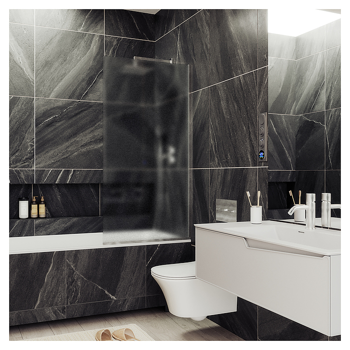 Шторка на ванну MaybahGlass MGV-93-5у 70х140 см, сатин, хром матовый