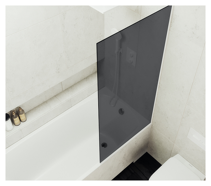 Шторка на ванну MaybahGlass MGV-81-1у 70х140 см, графит, белый