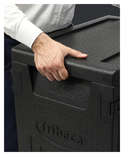 Термоконтейнер Tribeca EPP-600 используется службами доставки предприятий общественного питания и пищевой промышленности, а также в быту, во время туристических походов, пикника, рыбалки или дорожных путешествий для хранения и транспортировки приготовленных блюд, льда, свежих фруктов и других пищевых продуктов в автономных изотермических условиях в гастроемкостях или другой подходящей таре. Модель прямоугольно ориентированной формы оснащена 12 направляющими для гастроемкостей и плотно прилегающей распашной дверью. Изделие выполнено из высококачественного вспененного полипропилена (EPP) черного цвета. Особенности: