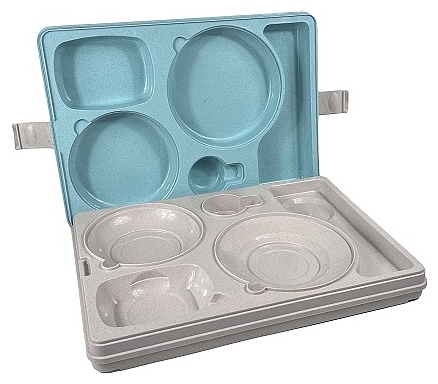 Термоподнос Tribeca TT-5NL используется службами доставки предприятий общественного питания и пищевой промышленности, а также в быту, во время туристических походов, пикника, рыбалки или дорожных путешествий для транспортировки приготовленных блюд и других пищевых продуктов в автономных изотермических условиях. Модель прямоугольно ориентированной формы оснащена 5 секциями для посуды и плотно прилегающей крышкой. Корпус выполнен из высококачественного полипропилена в комбинации серого и голубого тонов, термоизоляция – из экологичного пенополиуретана высокой плотности. Цена указана за 1 шт. Посуда не входит в комплект поставки и приобретается отдельно. Особенности: