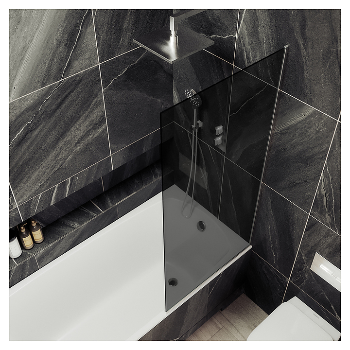Шторка на ванну MaybahGlass MGV-82-5у 80х140 см, графит, хром матовый