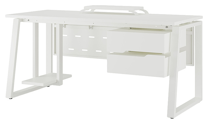 Компьютерный стол Кобор KTS1-140/60 white/premium используется в офисных помещениях и кабинетах руководителей. Модель оснащена опорами в форме наклонной трапеции. Каркас выполнен из металла, выкрашенного в цвет белый муар (RAL9016), столешница – из ламинированной древесно-стружечной плиты (ЛДСП) цвета белый премиум (W1000 ST9). Опции (заказываются отдельно):