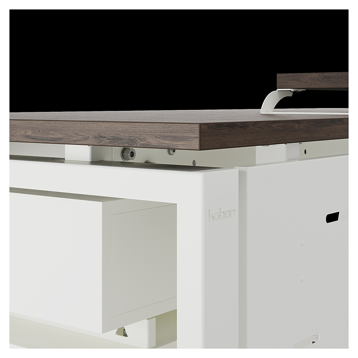 Компьютерный стол Кобор КTS1-80/70 white/charlston используется в офисных помещениях и кабинетах руководителей. Модель оснащена опорами в форме наклонной трапеции. Каркас выполнен из металла, выкрашенного в цвет белый муар (RAL9016), столешница – из ламинированной древесно-стружечной плиты (ЛДСП) цвета дуб чарльстон (H3154 ST36). Опции (заказываются отдельно):