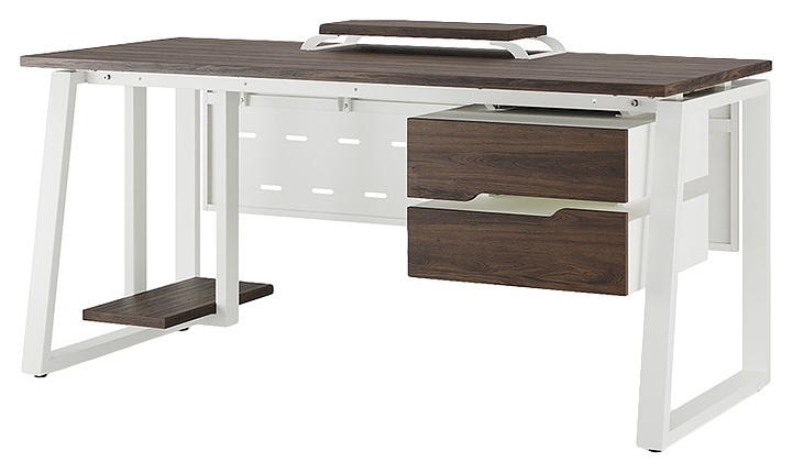 Компьютерный стол Кобор КTS1-140/80 white/charlston используется в офисных помещениях и кабинетах руководителей. Модель оснащена опорами в форме наклонной трапеции. Каркас выполнен из металла, выкрашенного в цвет белый муар (RAL9016), столешница – из ламинированной древесно-стружечной плиты (ЛДСП) цвета дуб чарльстон (H3154 ST36). Опции (заказываются отдельно):
