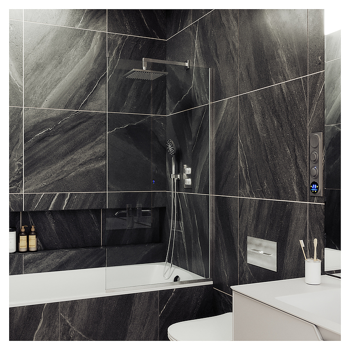 Шторка на ванну MaybahGlass MGV-65-5у 90х140 см, хром матовый