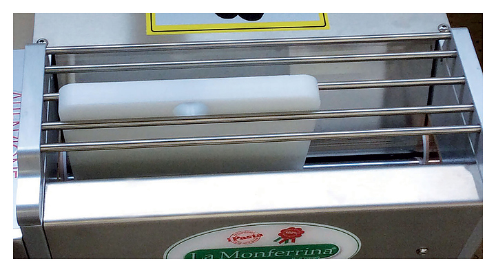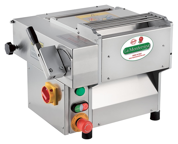 Тестораскатка-лапшерезка La Monferrina NINA 250 используется на предприятиях пищевой промышленности, общественного питания и торговли для замеса и раскатки теста для изготовления равиоли (пельменей), чебуреков, лапши и других продуктов, а также нарезки раскатанного теста на лапшу. Модель оснащена горизонтальным тестомесом и электромеханическим блоком управления. Корпус выполнен из анодированного алюминия, все соприкасающиеся с продуктом компоненты – из нержавеющей стали.
