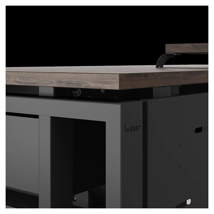 Компьютерный стол Кобор KTS2-140/60 black/charlston используется в офисных помещениях и кабинетах руководителей. Модель оснащена усиленными вертикальными балками опорами в форме наклонной трапеции. Каркас выполнен из металла, выкрашенного в цвет черный муар (RAL9005), столешница – из ламинированной древесно-стружечной плиты (ЛДСП) цвета дуб чарльстон (H3154 ST36). Опции (заказываются отдельно):