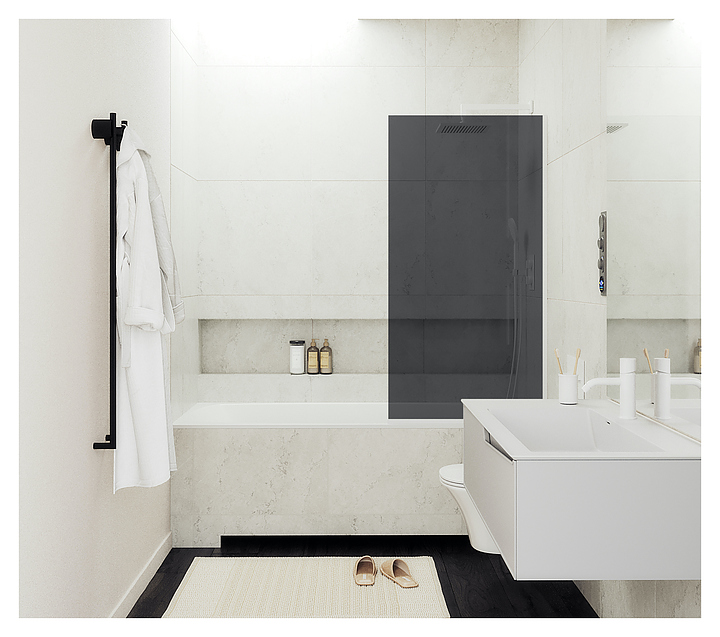 Шторка на ванну MaybahGlass MGV-83-1у 90х140 см, графит, белый
