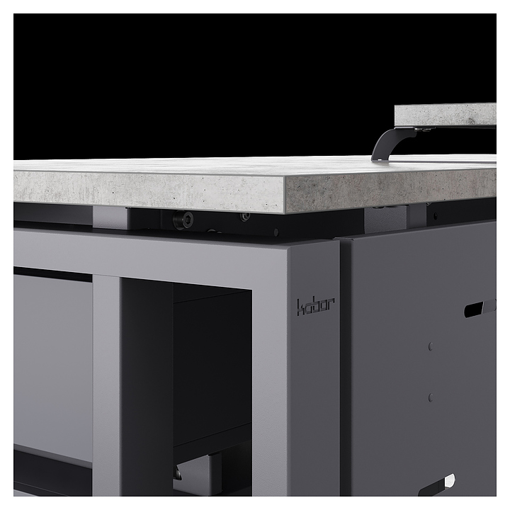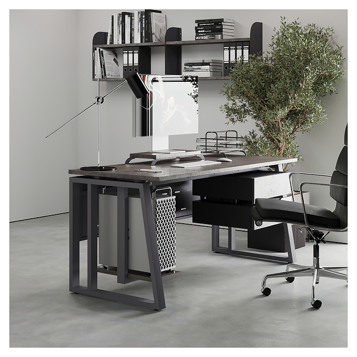 Компьютерный стол Кобор КTS2-100/60 graphite/chicago используется в офисных помещениях и кабинетах руководителей. Модель оснащена усиленными вертикальными балками опорами в форме наклонной трапеции. Каркас выполнен из металла, выкрашенного в цвет графит муар (RAL7024), столешница – из ламинированной древесно-стружечной плиты (ЛДСП) цвета бетон чикаго (F186 ST9). Опции (заказываются отдельно):