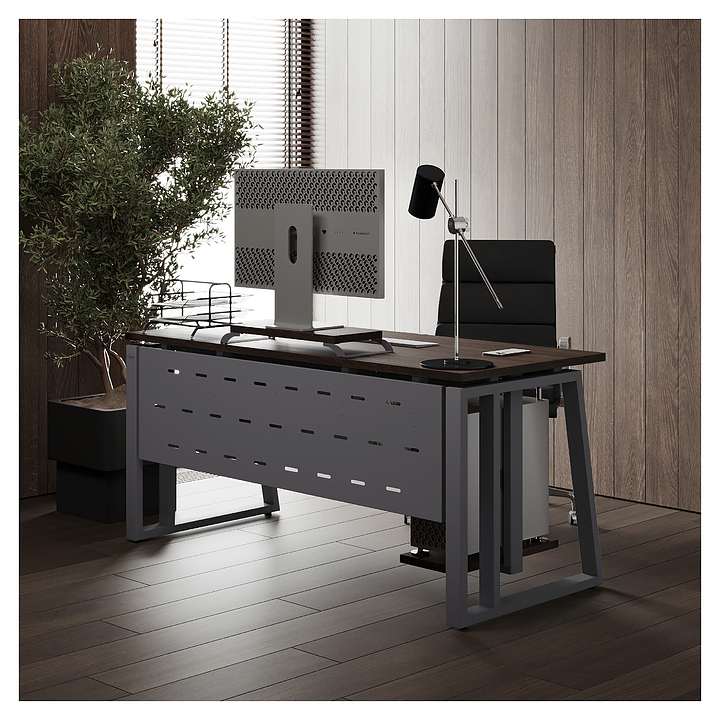Компьютерный стол Кобор КTS2-80/60 graphite/charlston используется в офисных помещениях и кабинетах руководителей. Модель оснащена усиленными вертикальными балками опорами в форме наклонной трапеции. Каркас выполнен из металла, выкрашенного в цвет графит муар (RAL7024), столешница – из ламинированной древесно-стружечной плиты (ЛДСП) цвета дуб чарльстон (H3154 ST36). Опции (заказываются отдельно):