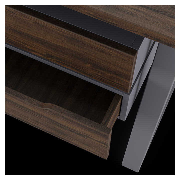 Компьютерный стол Кобор КTS2-160/60 graphite/charlston используется в офисных помещениях и кабинетах руководителей. Модель оснащена усиленными вертикальными балками опорами в форме наклонной трапеции. Каркас выполнен из металла, выкрашенного в цвет графит муар (RAL7024), столешница – из ламинированной древесно-стружечной плиты (ЛДСП) цвета дуб чарльстон (H3154 ST36). Опции (заказываются отдельно):