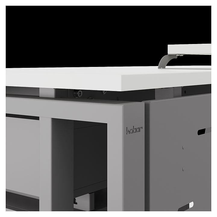Компьютерный стол Кобор KTS2-180/60 aluminum/premium используется в офисных помещениях и кабинетах руководителей. Модель оснащена усиленными вертикальными балками опорами в форме наклонной трапеции. Каркас выполнен из металла, выкрашенного в цвет алюминиевый металлик (RAL9006), столешница – из ламинированной древесно-стружечной плиты (ЛДСП) цвета белый премиум (W1000 ST9). Опции (заказываются отдельно):