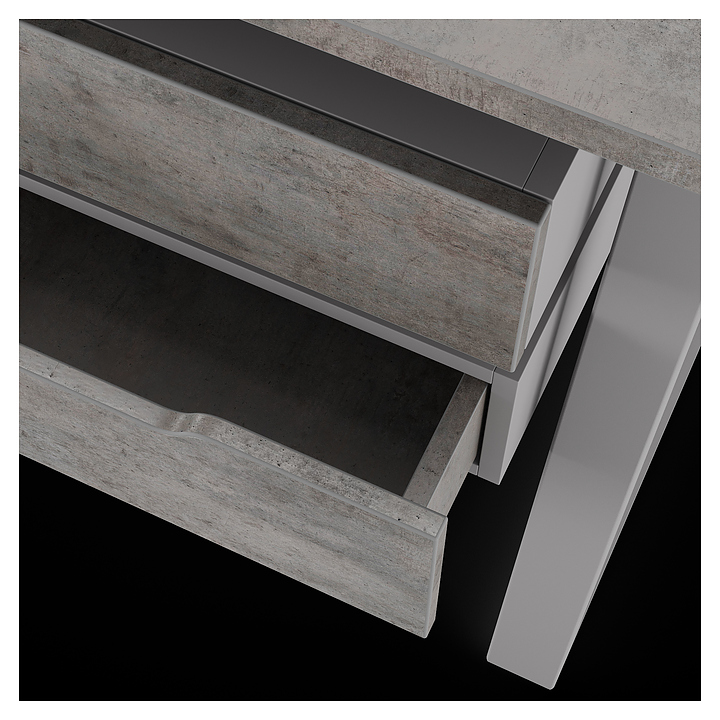 Компьютерный стол Кобор KTS2-180/60 aluminum/chicago используется в офисных помещениях и кабинетах руководителей. Модель оснащена усиленными вертикальными балками опорами в форме наклонной трапеции. Каркас выполнен из металла, выкрашенного в цвет алюминиевый металлик (RAL9006), столешница – из ламинированной древесно-стружечной плиты (ЛДСП) цвета бетон чикаго (F186 ST9). Опции (заказываются отдельно):