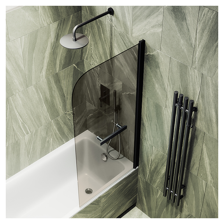 Шторка на ванну с полотенцедержателем MaybahGlass MGV-765-6 40х140 см, распашная, бронза, черный