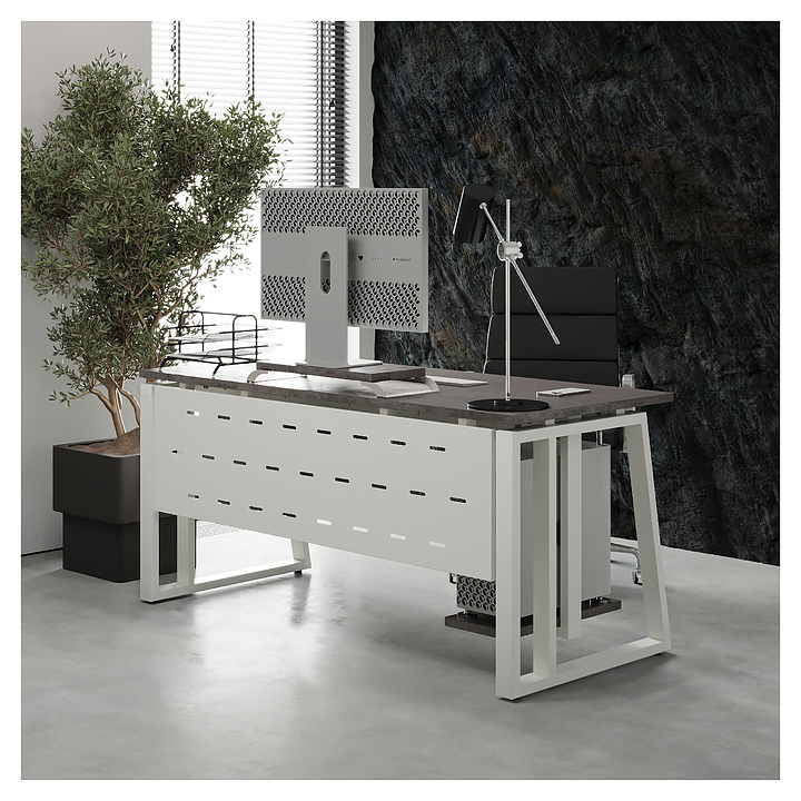 Компьютерный стол Кобор KTS2-80/60 white/chicago используется в офисных помещениях и кабинетах руководителей. Модель оснащена усиленными вертикальными балками опорами в форме наклонной трапеции. Каркас выполнен из металла, выкрашенного в цвет белый муар (RAL9016), столешница – из ламинированной древесно-стружечной плиты (ЛДСП) цвета бетон чикаго (F186 ST9). Опции (заказываются отдельно):