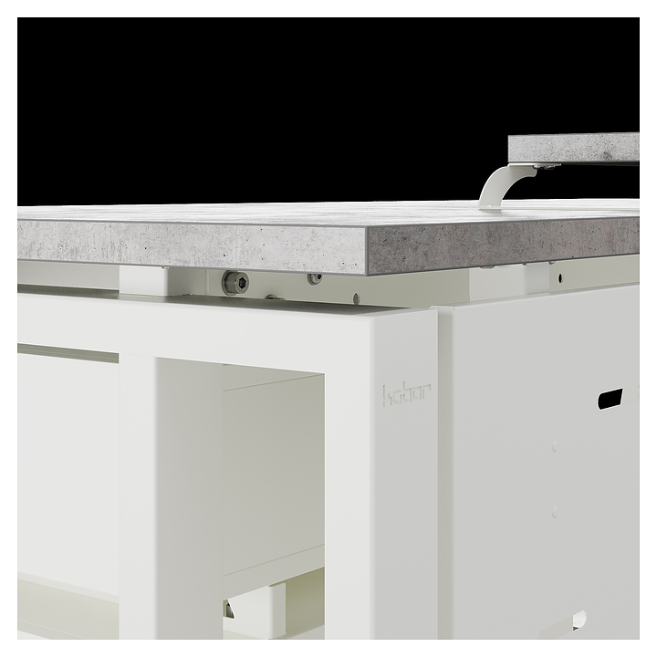 Компьютерный стол Кобор KTS2-100/80 white/chicago используется в офисных помещениях и кабинетах руководителей. Модель оснащена усиленными вертикальными балками опорами в форме наклонной трапеции. Каркас выполнен из металла, выкрашенного в цвет белый муар (RAL9016), столешница – из ламинированной древесно-стружечной плиты (ЛДСП) цвета бетон чикаго (F186 ST9). Опции (заказываются отдельно):