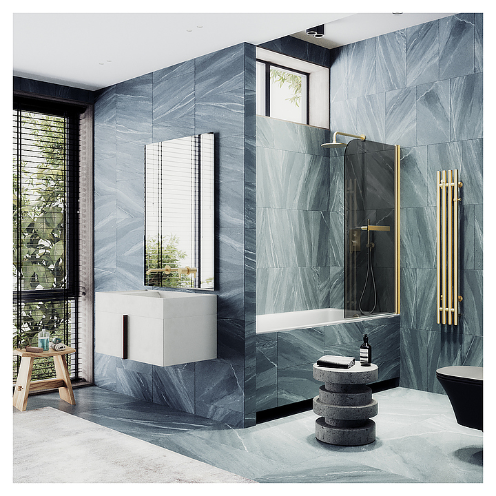 Шторка на ванну с полотенцедержателем MaybahGlass MGV-767-3 40х140 см, распашная, графит, золото