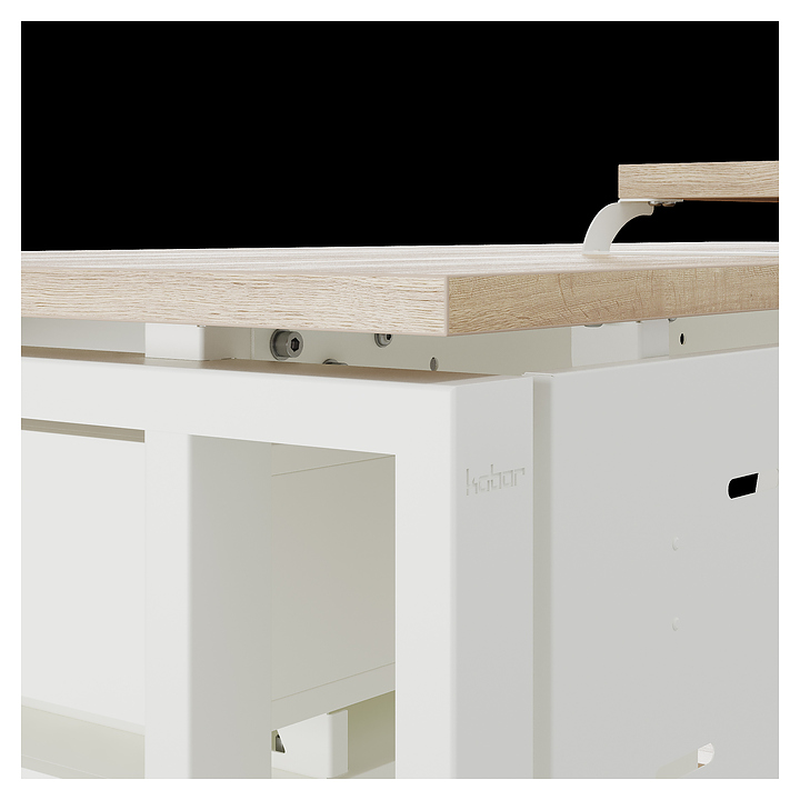 Компьютерный стол Кобор КTS2-180/60 white/natural используется в офисных помещениях и кабинетах руководителей. Модель оснащена усиленными вертикальными балками опорами в форме наклонной трапеции. Каркас выполнен из металла, выкрашенного в цвет белый муар (RAL9016), столешница – из ламинированной древесно-стружечной плиты (ЛДСП) цвета натуральный дуб (H1180 ST37). Опции (заказываются отдельно):