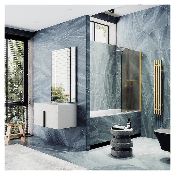 Шторка на ванну с полотенцедержателем MaybahGlass MGV-772-3 50х140 см, распашная, бронза матовая, золото