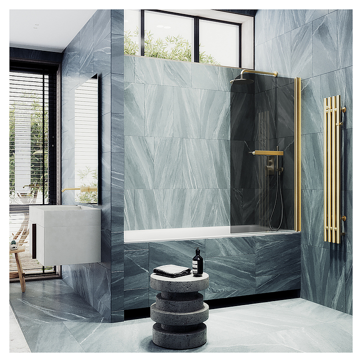 Шторка на ванну с полотенцедержателем MaybahGlass MGV-773-3 50х140 см, распашная, графит, золото