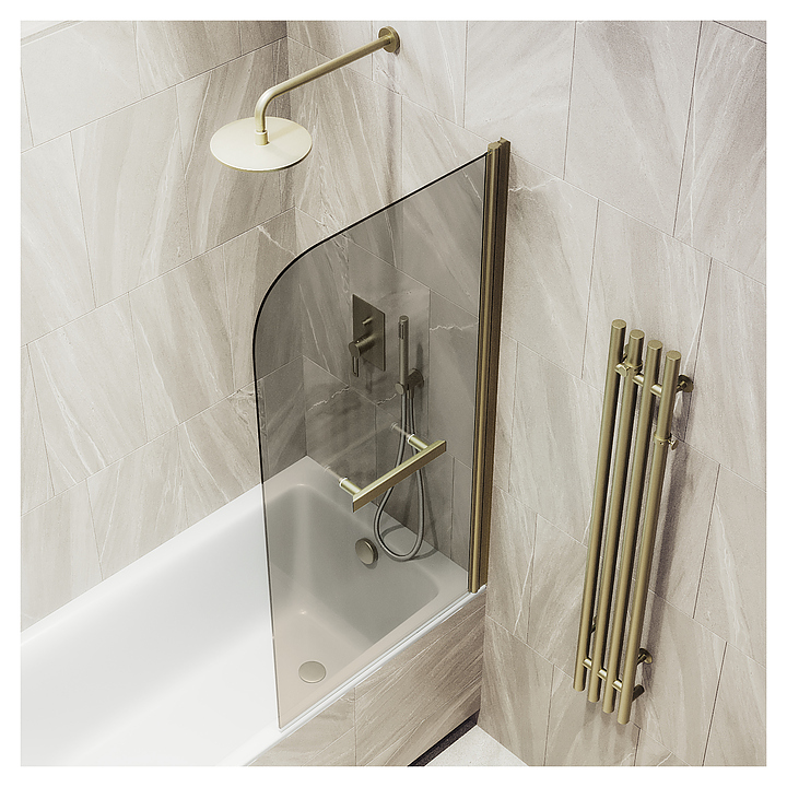 Шторка на ванну с полотенцедержателем MaybahGlass MGV-777-2 60х140 см, распашная, бронза, бронза