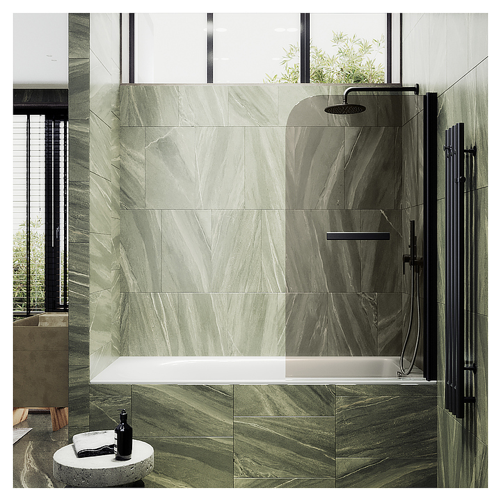 Шторка на ванну с полотенцедержателем MaybahGlass MGV-777-6 60х140 см, распашная, бронза, черный