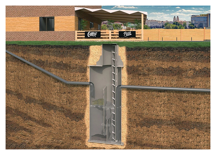Жироуловитель промышленный Экосети Хуран-B ОПП 22,0-1500 с лестницей (вертикальный)