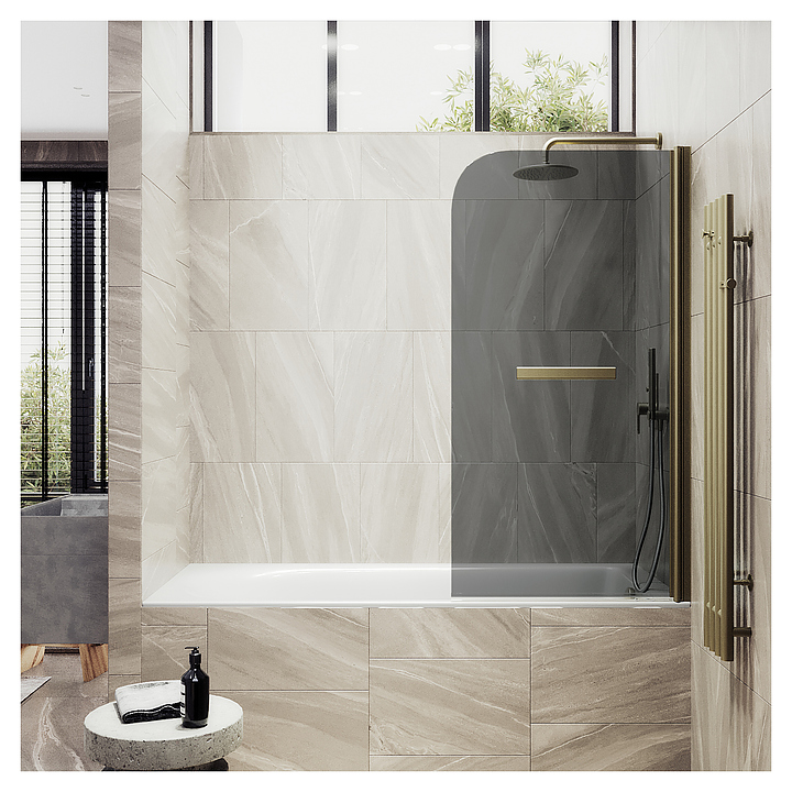 Шторка на ванну с полотенцедержателем MaybahGlass MGV-779-2 60х140 см, распашная, графит, бронза