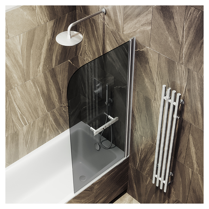Шторка на ванну с полотенцедержателем MaybahGlass MGV-779-5 60х140 см, распашная, графит, хром матовый