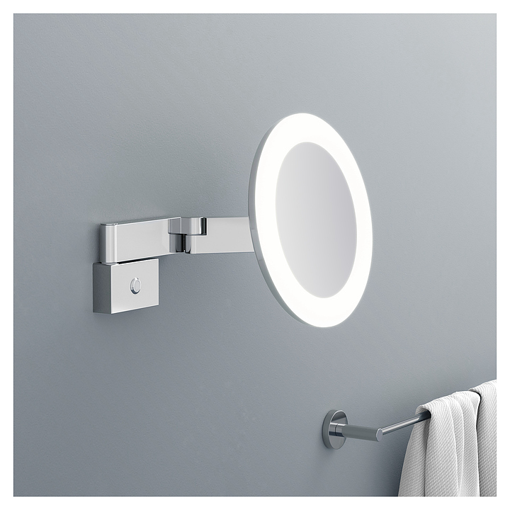 Косметическое зеркало TIMO Petruma 15276/00 предназначено для макияжа, бритья и других манипуляций с лицом, так как в нём лучше видно мелкие детали. Серия Petruma выполнена в современном стиле. Аксессуары этой коллекции идеально дополнят дизайн любой ванной комнаты. Модель оснащена подсветкой, имеет скрытые крепления и монтируется на стену. Изделие выполнено стекла и латуни, отличающейся прочностью, долговечностью и устойчивостью к перепадам температур. В комплект поставки входит набор креплений и шнур для подключения к сети. Дополнительные характеристики: