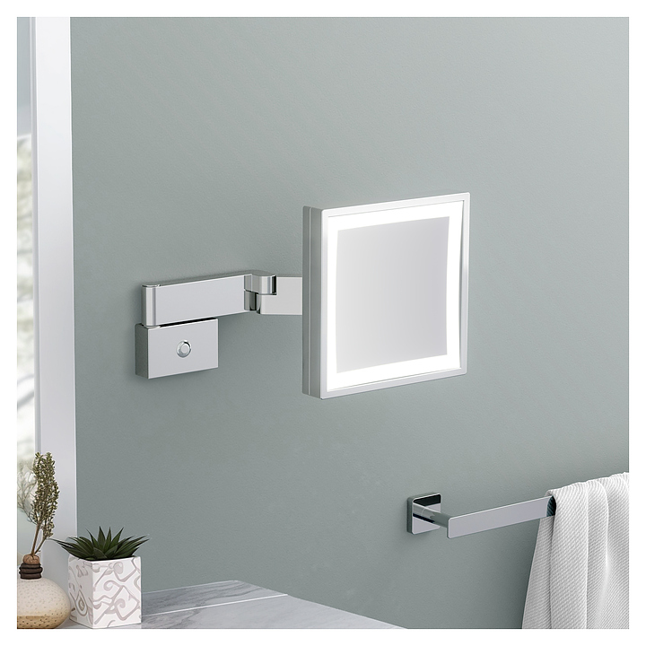 Косметическое зеркало TIMO Selene 10076/00 предназначено для макияжа, бритья и других манипуляций с лицом, так как в нём лучше видно мелкие детали. Серия Selene выполнена в современном стиле. Аксессуары этой коллекции идеально дополнят дизайн любой ванной комнаты. Модель оснащена подсветкой, имеет скрытые крепления и монтируется на стену. Изделие выполнено стекла и латуни, отличающейся прочностью, долговечностью и устойчивостью к перепадам температур. В комплект поставки входит набор креплений и шнур для подключения к сети. Дополнительные характеристики: