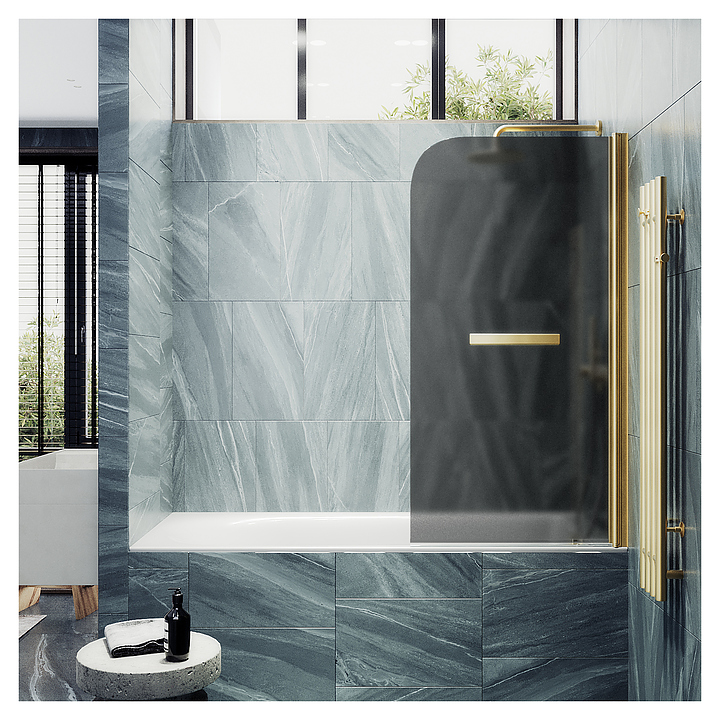 Шторка на ванну с полотенцедержателем MaybahGlass MGV-792-3 80х140 см, распашная, графит матовый, золото