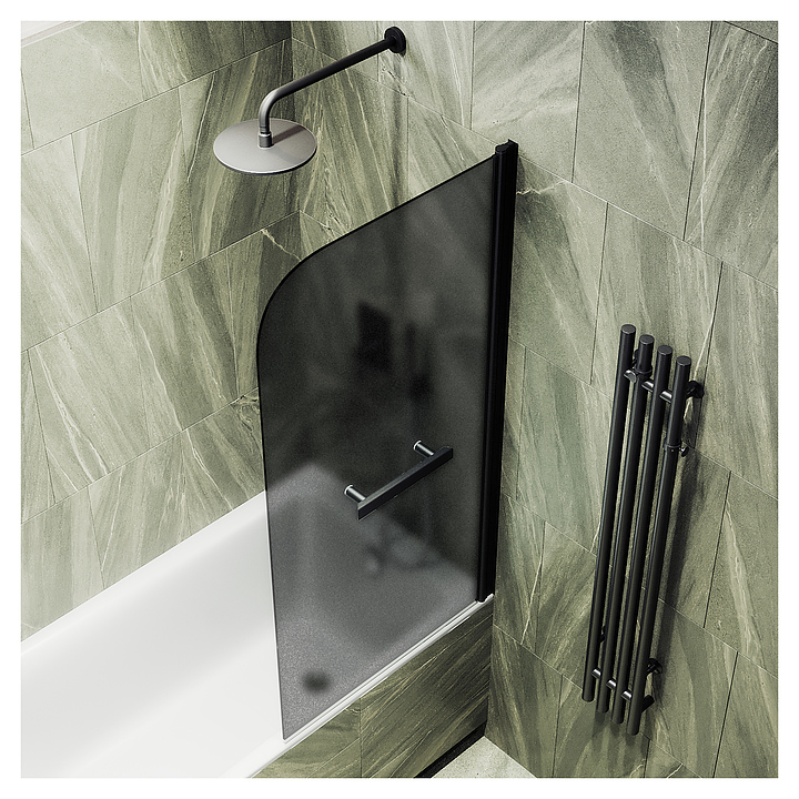 Шторка на ванну с полотенцедержателем MaybahGlass MGV-792-6 80х140 см, распашная, графит матовый, черный