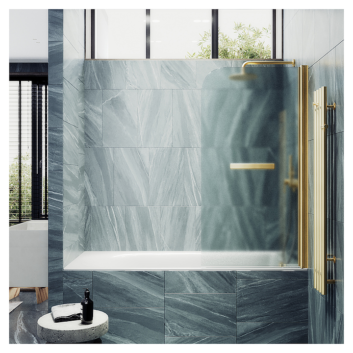 Шторка на ванну с полотенцедержателем MaybahGlass MGV-793-3 80х140 см, распашная, сатин, золото