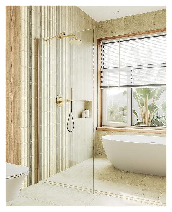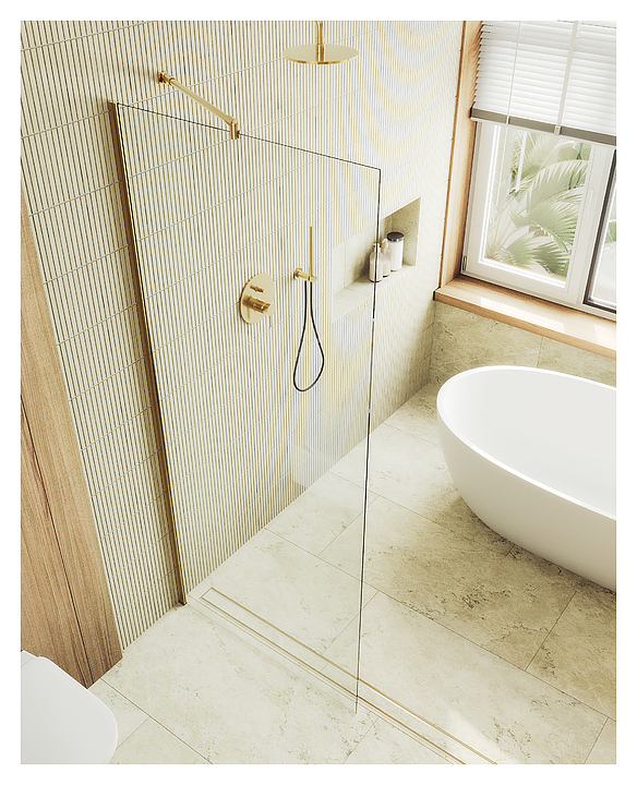 Перегородка душевая MaybahGlass MGD-695-3ш 79х195 см, золото